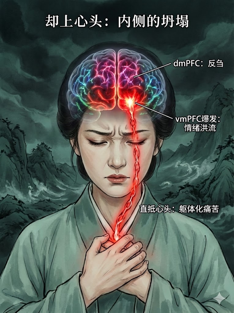 当李清照写下 “却上心头” 时,她的大脑的腹内侧前额叶(vmPFC) 正在被迫接收一场来自身体的海啸。